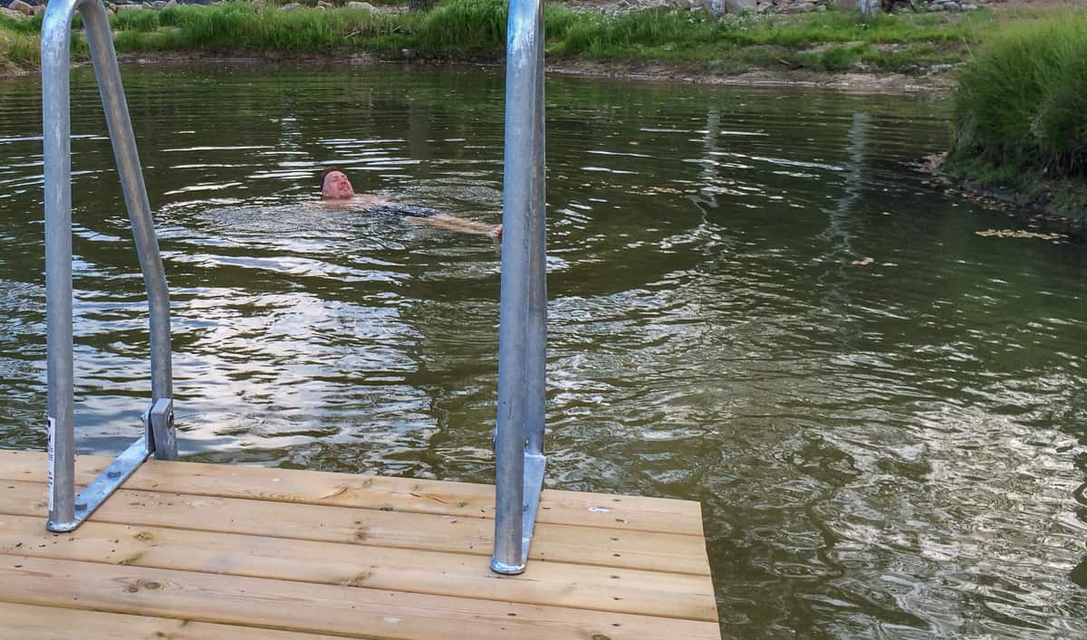 Börjar värmen kännas olidlig är det skönt med ett bad för att få ner kroppstemperaturen. Har man inte tillgång till hav, sjö eller pool kan en halvtimme i ett svalt badkar göra lika stor nytta. I nödfall fungerar ett fotbad med svalt vatten lika bra – även om det inte är lika njutbart.