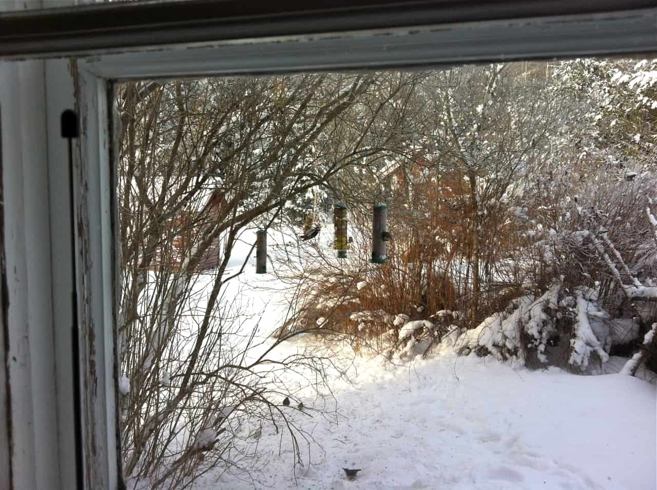 Det går åt några kilo under vintern om man vill hålla festen igång. Men det är trevligt med djurliv utanför köksfönstret. Har inte sett till ekorren i år. Kanske blev han avskräckt av massakern förra året. Lite synd, men å andra sidan blir inte foderautomaterna vandaliserade på samma sätt i år.