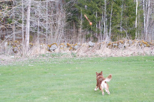 Enda undantaget är under jaktsäsongen då hon nosat upp någon slaktplats i skogen. Då kan hon försvinna ett tag för att sedan komma dragandes med en klöv eller ett horn.