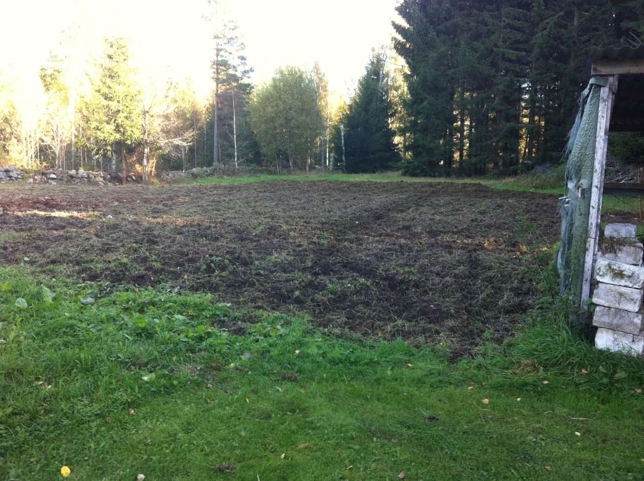 Senaste projektet var att köra över marken med jordfräsen. Det tog mig tre dagar (eller cirka åtta effektiva timmar). Resultatet blev över förväntan. Ytterligare ett antal stenar, stubbar och betongblock kom i dagen men jordfräsen tuggade på med glatt humör.
